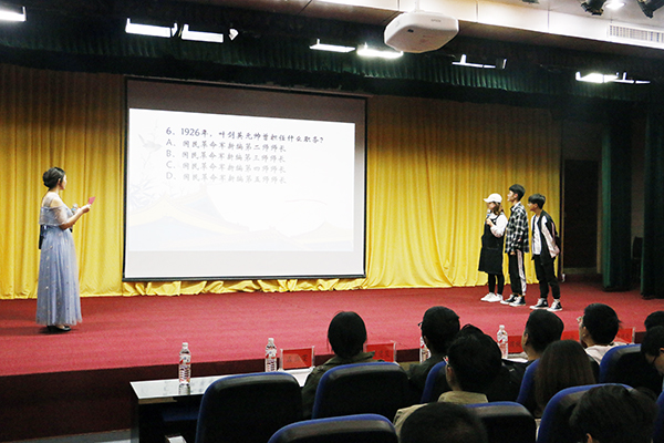 全校各院系学生共有300组选手参加比赛。经过初赛的激烈角逐,有20组参赛选手脱颖而出,入围决赛。决赛分为“群英荟萃”和“风起云涌”两个环节。在“群英荟萃”环节,选手们从《小兵张嘎》、《建军大业》等经典片段中,带领大家一起重温峥嵘岁月、缅怀红色历史;在“风起云涌”环节中,选手们对给出的不同难度的题目,谨慎选择,认真作答。根据选手们两个环节的综合表现,比赛现场评出了一等奖2名,二等奖4名,三等奖6名,优秀奖若干。