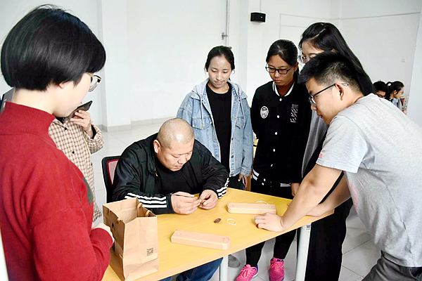 近期,在乐道书院格物讲堂,山东省和潍坊市两级非遗项目代表性传承人、潍坊市核雕界领军人物刘斌(号希金)老师,为我校20多名自愿报名的大学生传承人传授核雕工艺。