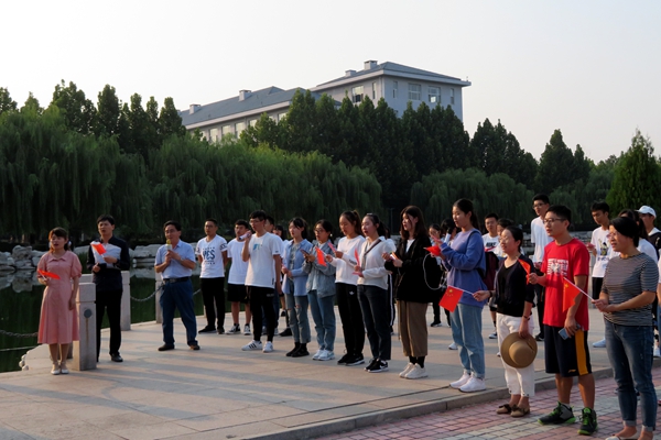 开展“学楷模、护国旗、唱国歌”活动。药学院党总支精心计划,组织师生集中观看了《圆梦中国 德耀中华---第七届全国道德模范颁奖仪式》,学习道德楷模的先进事迹,教职工们撰写了个人学习感悟;学习《中华人民共和国国旗法》《中华人民共和国国歌法》《中华人民共和国国徽法》,进行《国旗法》《国歌法》《国徽法》的知识竞赛,教职工增强了守护国旗意识,志愿做国旗的守护者;开展悬挂国旗活动,深化爱国主义教育。学院还结合学生社团建设,开展了“校园放歌庆国庆”活动,在智和湖边、广场时常听到师生“快闪”歌唱祖国的心声。