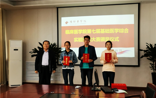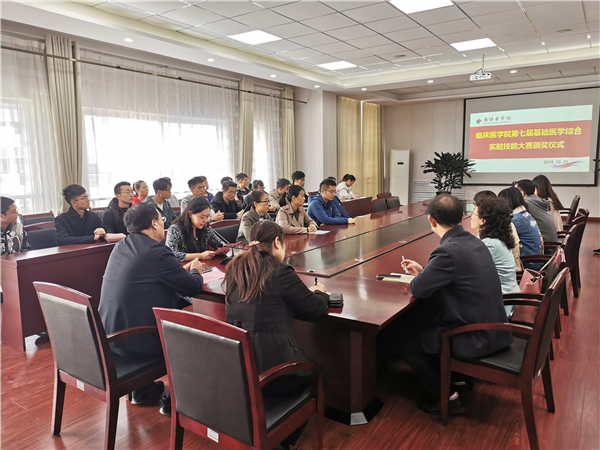 10月25日上午,临床医学院举行第七届基础医学综合实验技能大赛颁奖仪式,临床医学院党委书记董铁军、院长梁淑娟、相关教研室与实验室教师代表、获奖学生代表参加了仪式。会议由临床医学院副院长汲蕊主持。