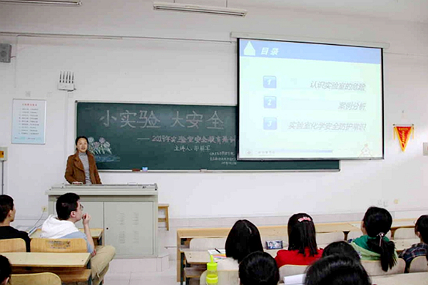 近日,公共卫生与管理学院食品检验与统计专业团总支于D102教室开展“小实验,大安全”——2019年实验室安全教育培训。实验室副主任邵丽军为同学们做专题讲座。