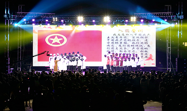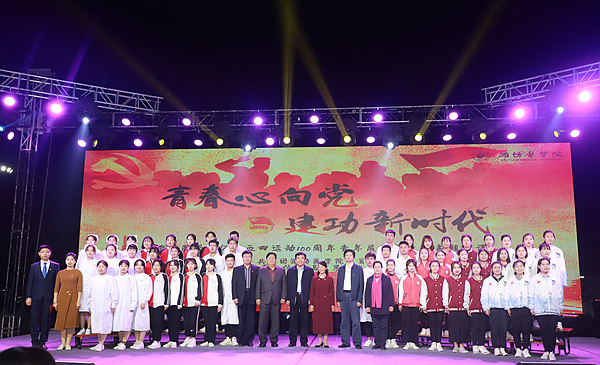 赓续五四精神,奋进复兴征程。在五四运动100周年到来之际,在举国欢庆五四青年节之时,“青春心向党 建功新时代”潍坊医学院纪念五四运动100周年青年展演暨大型主题团课在浮烟山校区中和广场盛大开课。校领导李欣章、管英俊、孙宏伟、朱军、刘军、田艳玲,学校各部门、院(系)负责人、各院(系)团组织负责人、全体学生辅导员及学校师生3000余人共同参与了这场现场主题团课。