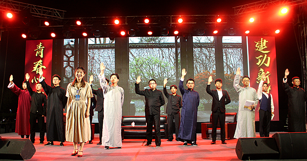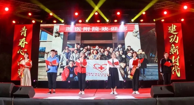 团课设定“青春心向党”“建功新时代”两个篇章。伴随着一幕《五四芳华》和一组群像式朗诵,现场观众仿佛被拉回到一百年前那个风雷激荡的时代。马克思主义学院青年教师刘明登上讲台,与大家分享了题为《五四精神不老,中国风华正茂》的微团课,帮助同学们加深了对五四运动历史意义和时代价值的认识。团课现场,合唱朗诵《少年中国说》以动人的歌声和激昂的朗诵,表达了百年前勃勃英姿的少年中国对祖国未来的殷切希冀。情景剧《谁主沉浮》和舞蹈《星火燎原》展现了时代青年以自己的青春热血投身革命、建设,改变中华民族的历史与命运的不懈奋斗。在朗诵《青春中国》和歌曲串唱《追梦》烘托的激情荡漾的氛围中,现场同学见证着中国特色社会主义进入了承前启后、继往开来的新时代。《我们家的五四日记》演绎了三代潍医人自强不息、锐意进取的青年故事。朗诵《让青春在奉献中闪光》展现了潍医志愿者扎根基层、服务基层、勇于实践、乐于奉献的青春形象。一首高亢而深情的《我和我的祖国》彰显了潍医学子青春勃发,与祖国同呼吸共奋进的时代担当。在重温入团誓词和齐唱团歌的仪式中,主题团课圆满结课。整场晚会还通过党委宣传部联系组织,实现了同步直播,逾万人次通过网络平台在线收看。
